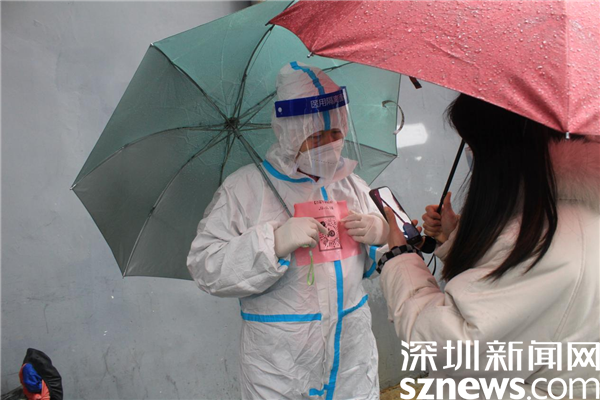 讀特客戶端·深圳新聞網(wǎng)2022年2月24日訊(記者 劉嘉敏 通訊員 楊紀(jì)歐)雖然這幾天的冷風(fēng)冷雨一直不停,氣氛低至6度,但深圳市羅湖區(qū)桂園街道老圍社區(qū)設(shè)在各處的核酸檢測(cè)點(diǎn)一直在有序進(jìn)行著。人們打著雨傘排隊(duì),社區(qū)工作人員和志愿者高效地引導(dǎo),讓等候的人快速地采樣,協(xié)助不會(huì)操作的人出示粵核酸碼。工作人員的手腳都凍僵了,但沒(méi)有人退縮,用自己的“凍”起來(lái),守護(hù)著深圳人的綠碼,捍衛(wèi)著社區(qū)的平安。