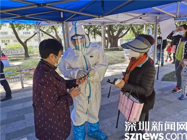 其中有一位長期堅持不懈來做志愿者的老黨員黃妙仙,尤為讓人感動。由于家住得遠(yuǎn),每回過來公交、地鐵需輾轉(zhuǎn)3趟,近一個半小時,從街道雅士居的核酸檢測點(diǎn)到玉龍社區(qū)的金湖公園核酸檢測點(diǎn),只有她有空,從未缺席。手肘尚未痊愈就匆匆趕來,只因看到報名的人數(shù)不夠;寒夜里鞋襪濕透仍在堅持,只因未到換崗時間。每回勸她多點(diǎn)休息,她總說我是黨員,還是支委,應(yīng)該多做的。