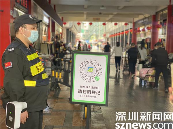 在明華廣場幾百米處的東門文化廣場的核酸檢測點,新一輪的核酸檢測正在開展,“請?zhí)崆皰叽a出示粵核酸,戴好口罩,保持間隔排好隊……”志愿者們引導市民有序進入檢測。記者了解到,明華樓市場恢復營業(yè)后,東門商業(yè)街區(qū)管理部門加強常態(tài)化防控,做好各項措施,督促步行街區(qū)商家壓實防疫主體責任,通過“東門步行街商家自治微信工作群”及電話提醒等方式,要求各商廈嚴控大型活動、人群聚集,本物業(yè)商鋪店員嚴格落實戴口罩,對進店顧客掃碼、測溫及登記。
