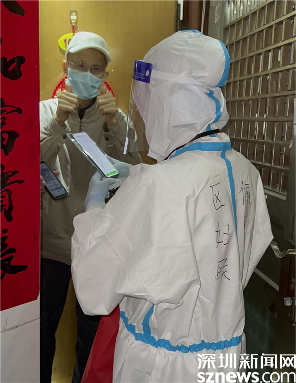 另外組的吳佩霞敲開一戶居民的門,開門的大叔舉起雙手,為她們點贊。點滴溫暖,滿滿能量。