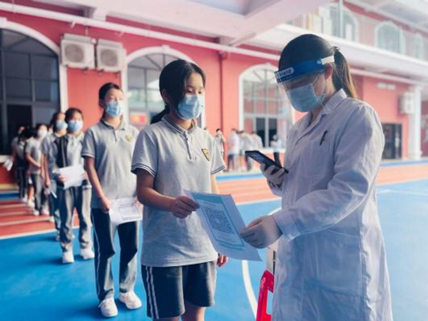 進入闊別已久的校園,興奮和激動的心情溢于言表,提前兩天入校的初三年級學生做出了表率:用餐隊伍一米距,透明隔斷搭建的用餐區(qū)明亮又溫馨;課間時間在班主任的帶領下,大家排隊測核酸,安靜、有序的隊伍讓“大白”對學生點贊。少年已歸,向陽而生;不忘初心,逐夢而行。這個夏天,老師帶領著學生們一邊防疫,一邊學習,合力同行,一起向未來!