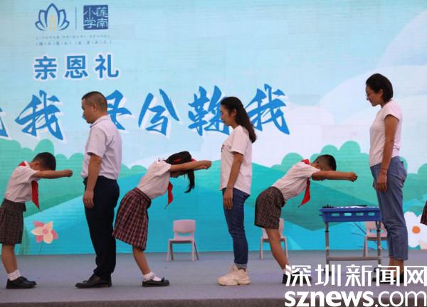 活動(dòng)由詩(shī)歌吟唱《鹿鳴》拉開了序幕?!案纲馍?,母兮鞠我”,熒幕上播放著子女和父母溫馨互動(dòng)的視頻,隨后上演的親恩禮,表達(dá)了子女對(duì)父母的深深愛意。當(dāng)主持人問(wèn)到一位家長(zhǎng)時(shí),她眼含熱淚地說(shuō):“我此刻很激動(dòng)也很幸福,孩子給我捶背還給我寫卡片,感謝這次儀式感滿滿的活動(dòng),拉進(jìn)了我們家長(zhǎng)和孩子的距離,真的非常暖心!”