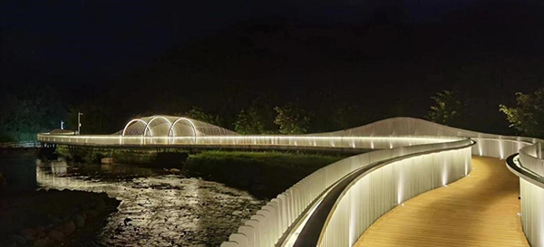 圖為正坑水碧道“打卡點(diǎn)”碧谷流嵐夜間實(shí)景(項(xiàng)目供圖)