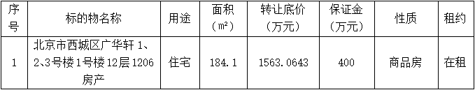 深圳報業(yè)集團委托北京產(chǎn)權交易所對北京市西城區(qū)廣華軒1、2、3號樓1號樓12層1206房產(chǎn)進行公開掛牌交易,北京產(chǎn)權交易所現(xiàn)已公開披露以下轉讓信息,廣泛征集受讓方。請有意者登錄北京產(chǎn)權交易所官方網(wǎng)站報名辦理意向受讓申請。