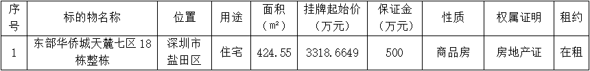 深圳報業(yè)集團委托深圳聯(lián)合產(chǎn)權(quán)交易所對深圳市鹽田區(qū)東部華僑城天麓七區(qū)18棟整棟房產(chǎn)進行公開掛牌交易,深圳聯(lián)合產(chǎn)權(quán)交易所現(xiàn)已公開披露以下產(chǎn)權(quán)轉(zhuǎn)讓信息,廣泛征集受讓方。請有意者到深圳聯(lián)合產(chǎn)權(quán)交易所辦理受讓登記手續(xù)。