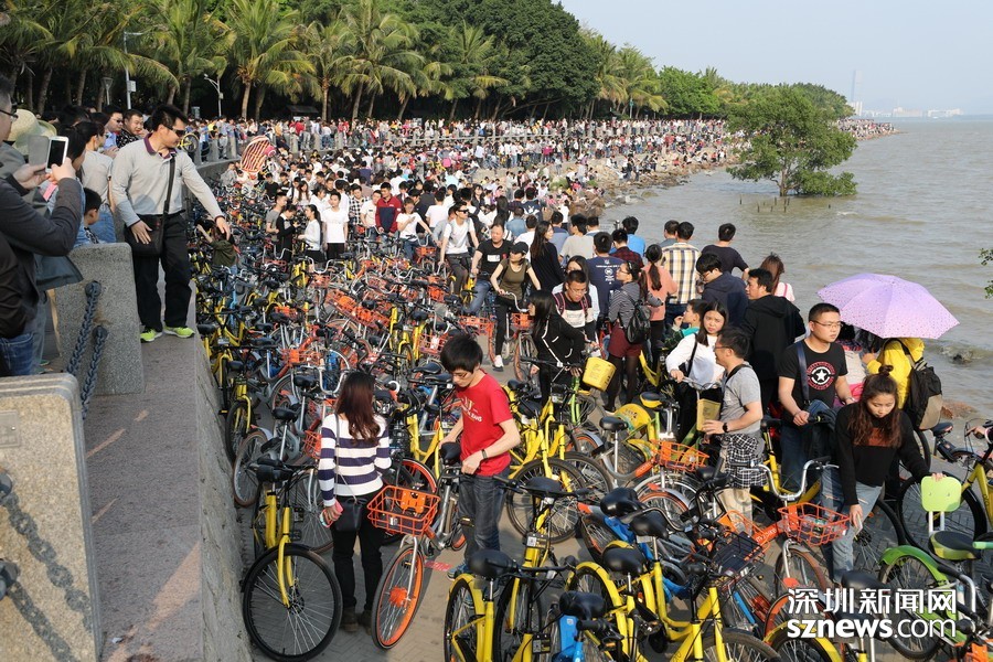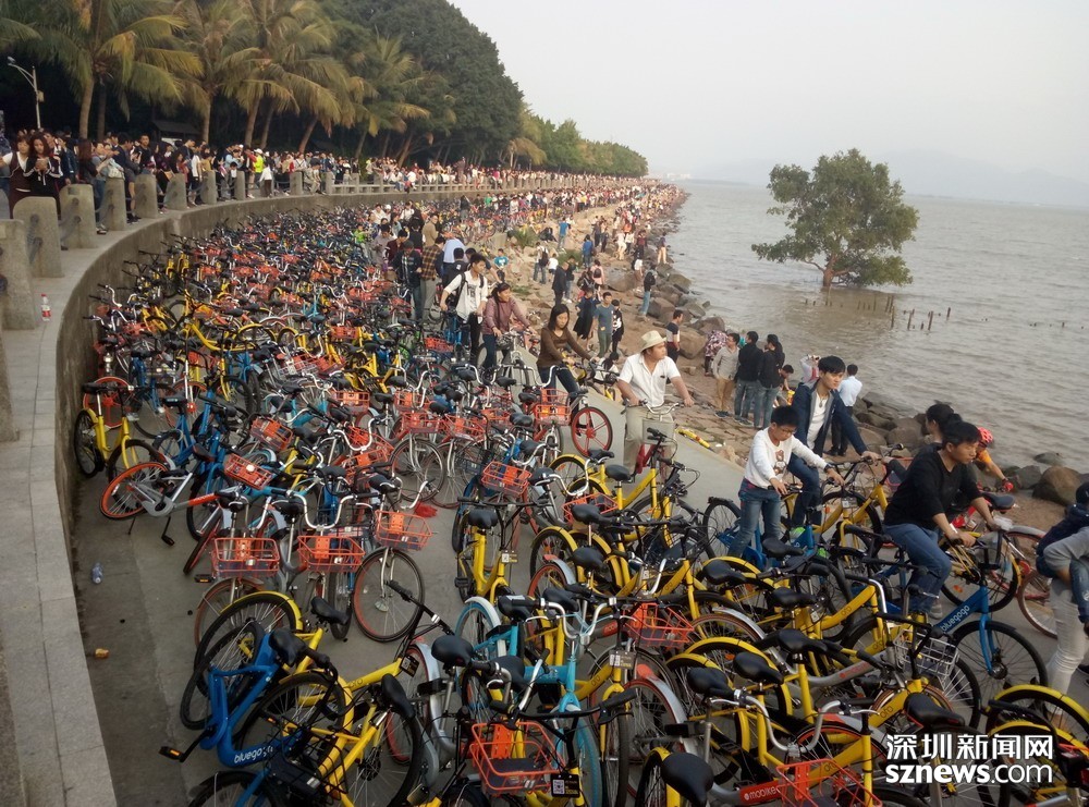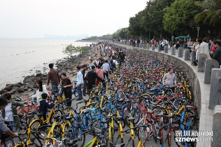 鵬城眼|深圳人假日勤動(dòng)腳 共享單車“擠爆”深圳灣
