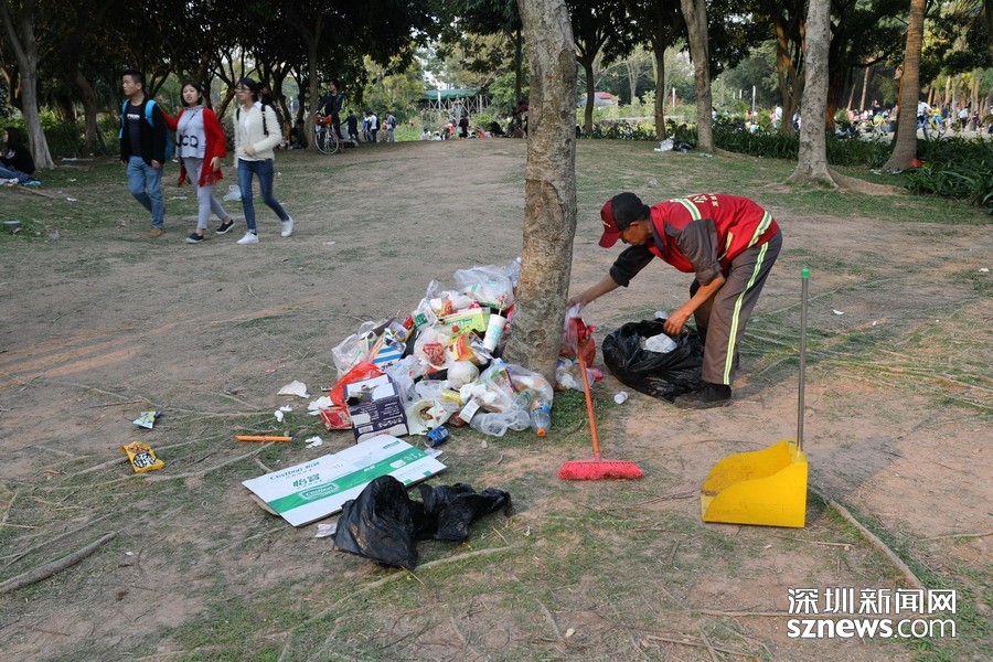 節(jié)假日人流量和車流量的加大,也給深圳灣公園內(nèi)的生態(tài)環(huán)境帶來了壓力,人流密集的地方,垃圾的產(chǎn)生也相對(duì)較多,在深圳灣公園的草坪上,許多游客遺留的垃圾, 給環(huán)衛(wèi)工人增加了工作量。