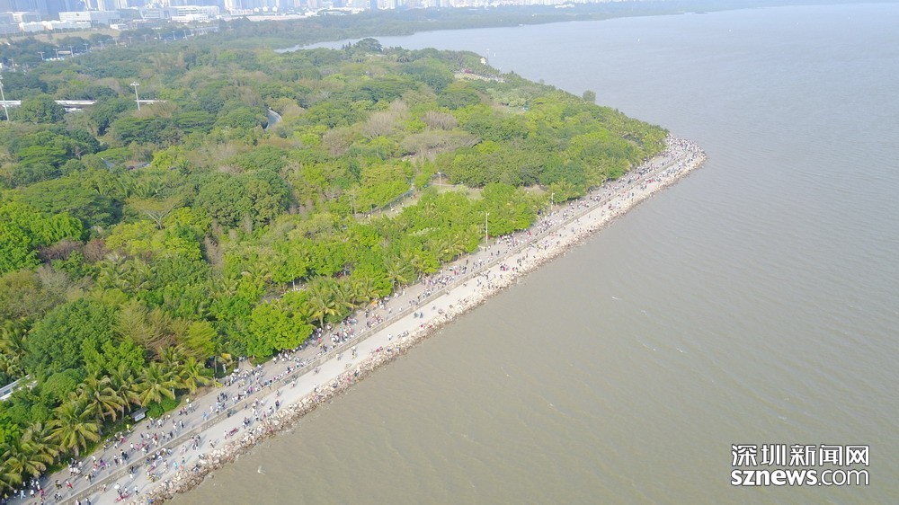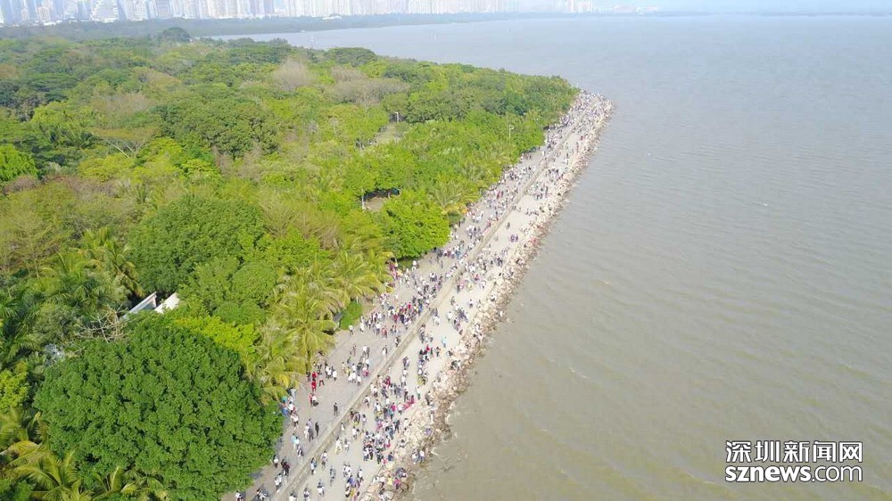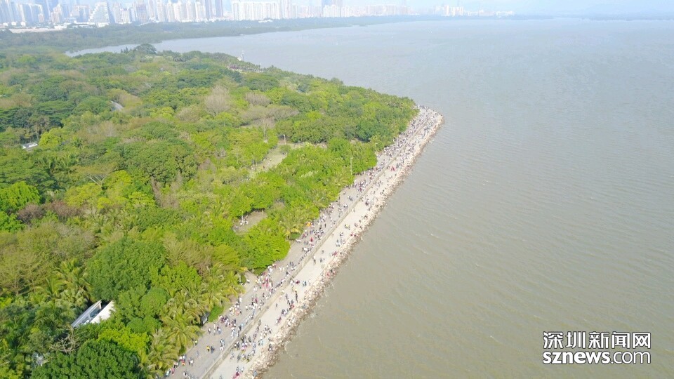 深圳灣公園內(nèi)人流來往景象