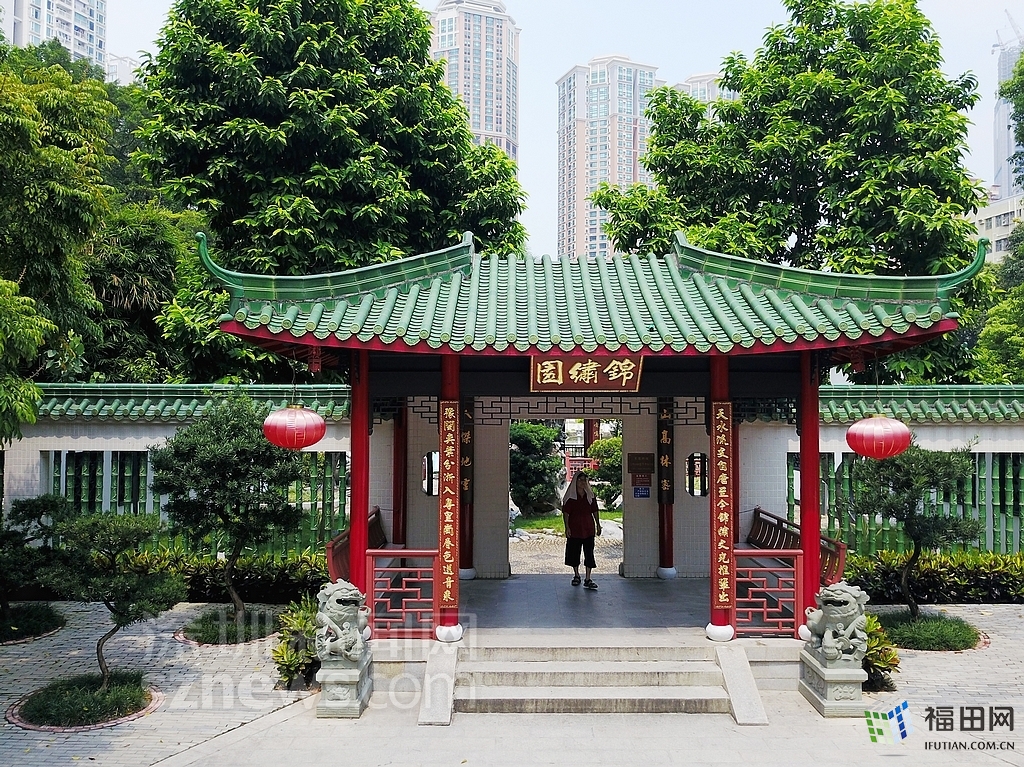 錦繡園占地面積約2萬平方米。園內(nèi)有古樹,且樹木成蔭、古亭假山小橋流水,景色怡人。園內(nèi)建筑以古建亭臺樓閣為主,設(shè)有荔枝園林、社會團體及組織種植的紀念園林、健身跑道、健身廣場、錦鯉魚塘以及各具特色的小型園區(qū)。