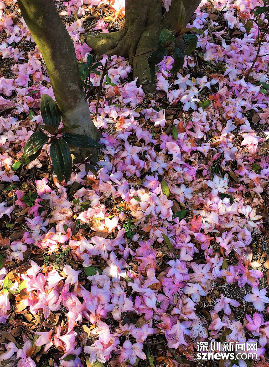 據(jù)了解,毛棉杜鵑花是深圳唯一的喬木型杜鵑,大家平時(shí)見到最多的杜鵑,如映山紅、錦繡杜鵑都是灌木類型。毛棉杜鵑花呈淡紫色、粉紅色或粉白色,艷麗清雅,世界上只有深圳才有大量的毛棉杜鵑資源。