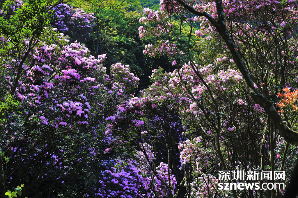 梧桐山風(fēng)景區(qū)有關(guān)負(fù)責(zé)人介紹,經(jīng)過多年精心撫育”位于小梧桐停車場北側(cè)的“杜鵑谷”的毛棉杜鵑全面進(jìn)入盛花期,呈現(xiàn)出比“萬花屏”規(guī)模更大的花海景觀,已然成為梧桐山毛棉杜鵑資源最豐富的區(qū)域。為了方便游客近距離的欣賞美景,風(fēng)景區(qū)管理處依據(jù)山勢地形,修建了自然質(zhì)樸的步道,游客們將在繁花中穿行,置身于萬千花雨中。