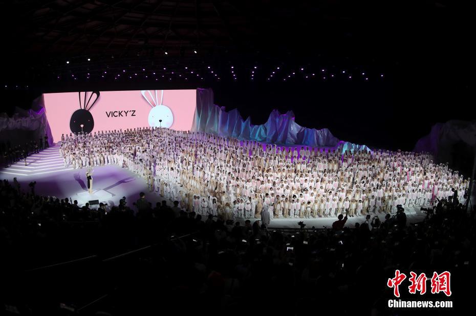 4月1日晚,VICKY’Z·許馨尹時(shí)裝發(fā)布會(huì)在北京舉行,本季服裝發(fā)布以極光(Aurora)為主題,一千多名小模特登臺(tái)表演。參加發(fā)布會(huì)的小模特還進(jìn)行了"最多人裝扮成兔子聚會(huì)"吉尼斯世界紀(jì)錄官方挑戰(zhàn)。中新社記者盛佳鵬 攝