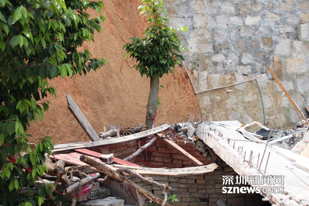 違法建筑拆除后,墻體露出的鋼筋