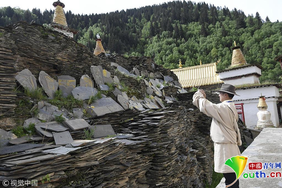 在四川阿壩州壤塘縣棒托寺內(nèi)珍藏約50萬片明清時(shí)期鐫刻的大藏經(jīng)《甘珠爾》和《丹珠爾》,大藏經(jīng)左高9.7米,右高9.2米,長(zhǎng)46米、左寬160米,右寬13米,占地598平方米,是目前全世界保存最完整、規(guī)模最宏大、內(nèi)容最豐富的石刻大藏經(jīng)孤品。據(jù)史料記載,由明末清初60余名石匠辛勤鐫刻9年而成。石刻藏文經(jīng)書圖文并茂,筆法流暢,疏密有致,陰陽相背,滿版生輝。具有極高的文物和藝術(shù)研究?jī)r(jià)值。圖為堆積的石刻大藏經(jīng)孤品。圖片作者/視覺中國(guó)