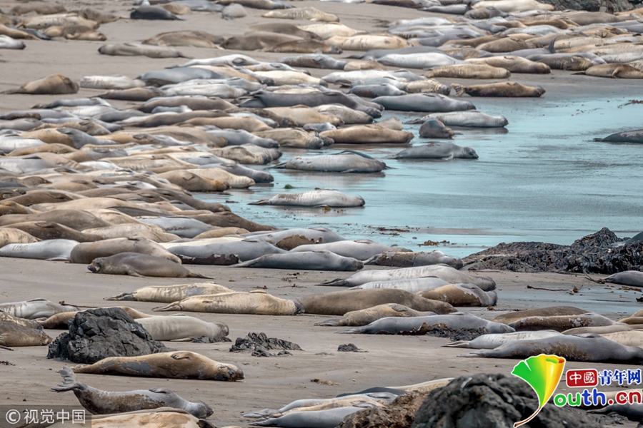 美國加州,阿根廷攝影師Lucio Moujan鏡頭下的圣西蒙海灘,整個海灘被陽光下午睡的象海豹占領(lǐng)。攝影師說道,“那里大概有數(shù)百只象海豹吧,我不知道具體數(shù)目,但是那有一大群。