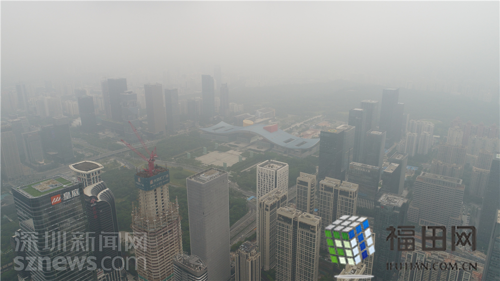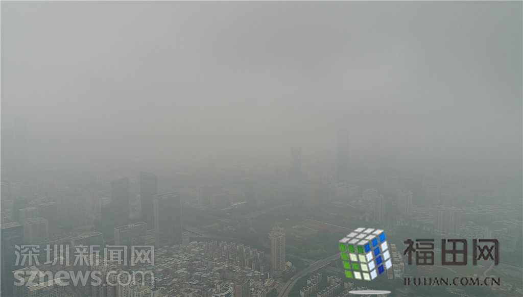 整個(gè)福田中心區(qū)都籠罩在灰霾之中。
