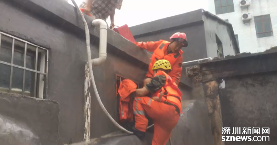 大鵬新區(qū)南澳東山碼頭籃球場旁邊樓房三樓,受臺風影響水位上升,現(xiàn)場3人被困,大鵬直屬中隊緊急出動1輛水陸兩用車,1輛消防車,6名指戰(zhàn)員趕赴現(xiàn)場。經(jīng)過1個多小時的救援,于13點26分成功解救2名成年人、一名小孩。