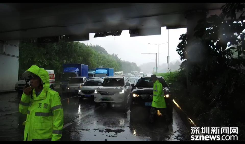 北環(huán)皇崗立交橋的工作人員正在水中尋找下水通道口