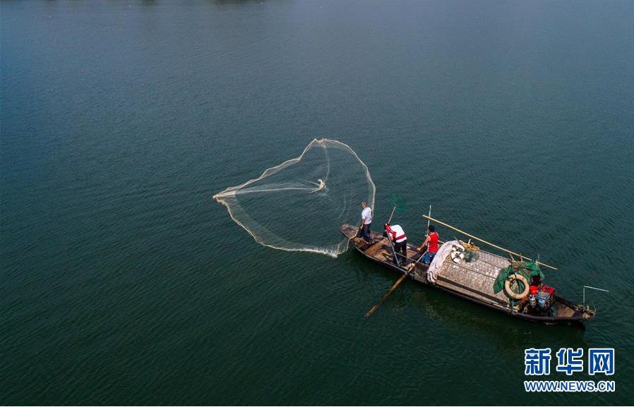 9月18日,漁民們乘坐漁船在富春江里捕撈江鮮(無人機(jī)拍攝)。