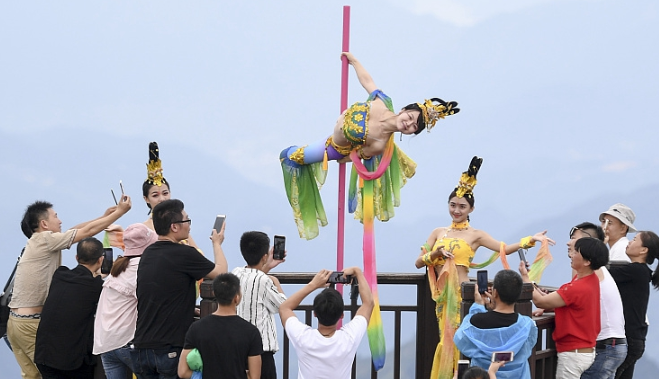 長(zhǎng)三角第一高峰上演高空鋼管舞 舞者 ...