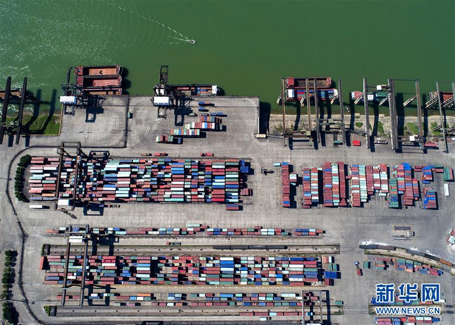 這是西江黃金水道上的貴港羅泊灣集裝箱碼頭(3月9日攝,無人機(jī)航拍)。 新華社記者 周華 攝