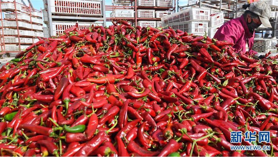 9月16日,阜城縣王集鄉(xiāng)南張莊村農(nóng)民在整理收獲的辣椒。近年來,河北省阜城縣王集鄉(xiāng)在推進產(chǎn)業(yè)富民過程中,積極引導農(nóng)民調(diào)整農(nóng)業(yè)產(chǎn)業(yè)結構,按照品種特色化、種植規(guī)?;a(chǎn)銷一體化的“公司+基地+農(nóng)戶”的經(jīng)營模式,鼓勵農(nóng)民發(fā)展特色辣椒種植,推行“訂單種植”模式,開辟出了一條農(nóng)民創(chuàng)收新路徑。目前,阜城縣王集鄉(xiāng)辣椒種植面積3100余畝,每畝年收益2500元以上,帶動當?shù)剞r(nóng)民實現(xiàn)增收。新華社記者朱旭東攝