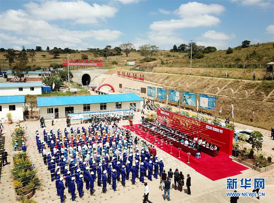 這是9月24日拍攝的內(nèi)羅畢-馬拉巴標(biāo)軌鐵路(內(nèi)馬鐵路)項(xiàng)目第一期恩貢隧道貫通儀式現(xiàn)場(chǎng)(航拍照片)。 由中國交通建設(shè)股份有限公司承建的內(nèi)羅畢-馬拉巴標(biāo)軌鐵路(內(nèi)馬鐵路)項(xiàng)目第一期恩貢隧道24日實(shí)現(xiàn)貫通。據(jù)悉,恩貢隧道全長(zhǎng)約4.5公里,是目前東非地區(qū)最長(zhǎng)的鐵路隧道。它的建成標(biāo)志著內(nèi)馬鐵路項(xiàng)目第一期取得了突破性進(jìn)展。 新華社記者王騰攝