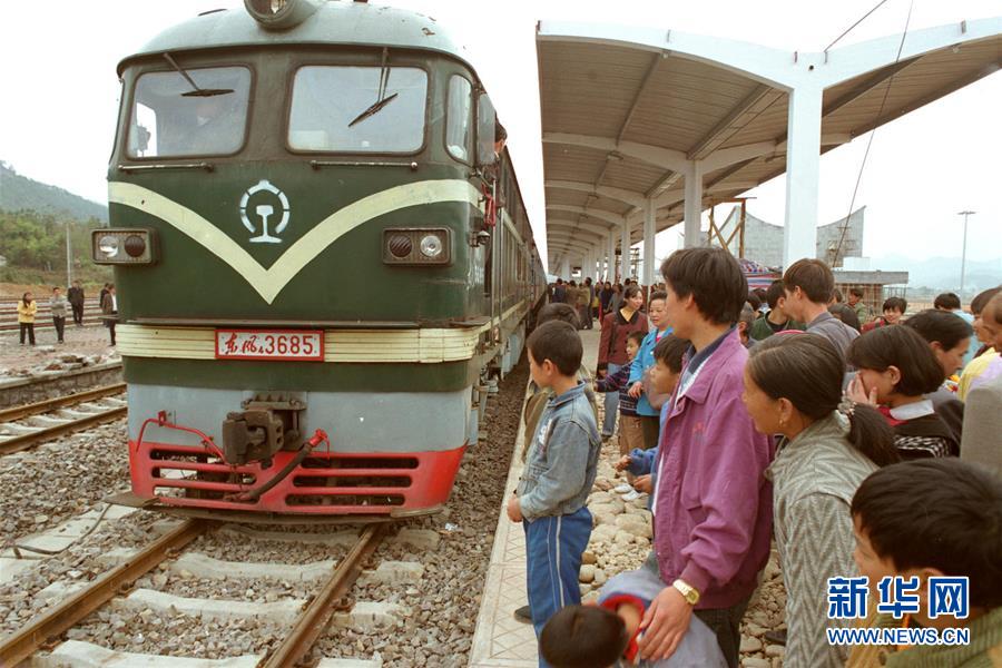 1998年12月6日,首列福州-南平-武夷山旅游客運列車緩緩駛進武夷山站。 新華社記者張國俊 攝