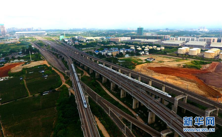 一列動車在南寧市區(qū)行駛(9月4日無人機拍攝)。 廣西壯族自治區(qū)成立60年來,鐵路建設(shè)發(fā)生翻天覆地的變化。來自中國鐵路南寧局集團有限公司的數(shù)據(jù)顯示,1958年廣西鐵路總里程為1346.3公里,如今廣西鐵路總里程達5191公里。廣西與周邊相鄰省份間實現(xiàn)動車“公交化”開行。此外,北部灣港—重慶班列、東盟海產(chǎn)品冷鏈班列、“百色一號”果蔬專列等的開通和運營,強化了鐵路供給的針對性和有效性。鐵路成為助推廣西經(jīng)濟社會快速發(fā)展的“大動脈”。 新華社記者陸波岸攝