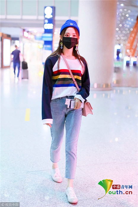 2018年9月25日,北京,“錦鯉少女”楊超越現(xiàn)身機(jī)場(chǎng),她身穿“彩虹裝”青春無(wú)敵,戴著糖果色耳環(huán),細(xì)節(jié)處可愛吸睛。