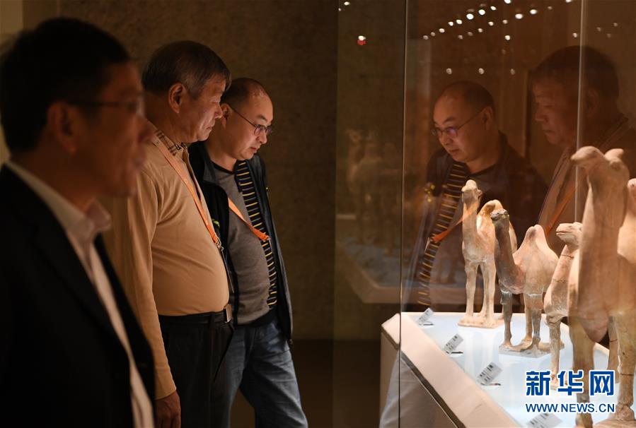 9月27日,在敦煌國際會(huì)展中心,參觀者欣賞“古道天馬——絲綢之路上的交通”展覽。新華社記者范培珅攝