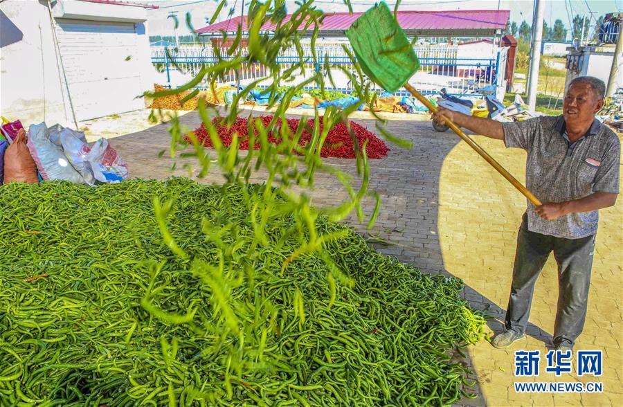 9月28日,饒陽(yáng)縣留楚鄉(xiāng)影林村的種植戶(hù)在翻晾辣椒。 近年來(lái),河北省饒陽(yáng)縣結(jié)合市場(chǎng)需求,積極引進(jìn)特色品種辣椒種植,開(kāi)辟出一條農(nóng)民增收致富新路。目前,該縣特色辣椒種植面積1000余畝,種植戶(hù)年均增收3000余元。 新華社記者 李曉果攝