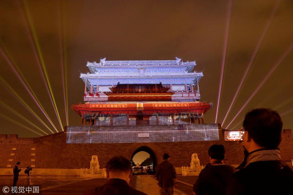 節(jié)日期間,世貿(mào)天階、石景山摩天輪、國貿(mào)三期、建國門復興門彩虹橋、金融街、永定門城樓、中關(guān)村1號、八達嶺長城、賽隆國際文化創(chuàng)意園、華熙廣場等11處將先后亮起燈光秀。