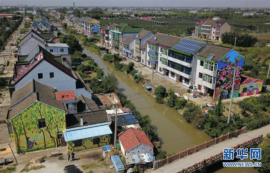 這是10月1日拍攝的上海金山區(qū)呂巷鎮(zhèn)和平村民居壁畫(huà)。