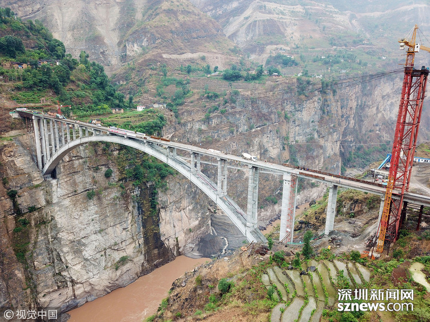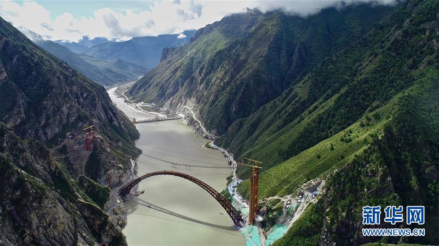 9月28日拍攝的川藏鐵路拉林段重點(diǎn)標(biāo)志性工程藏木特大橋。 當(dāng)日,隨著最后一節(jié)鋼管拱的對(duì)位和鎖定完畢,川藏鐵路拉林段藏木特大橋成功合龍,標(biāo)志著大橋主體結(jié)構(gòu)施工取得了關(guān)鍵性勝利。藏木特大橋由中國(guó)中鐵廣州局集團(tuán)承建,拱高112米,橋橫跨雅魯藏布江峽谷,水深66米。 新華社記者普布扎西攝