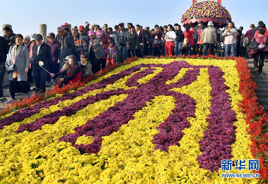 10月17日,游客在開封龍亭公園欣賞菊花。重陽時(shí)節(jié),各色菊花競相綻放,把古都開封裝點(diǎn)得分外秀美,吸引眾多游客前來觀賞游玩。 新華社記者 李安 攝