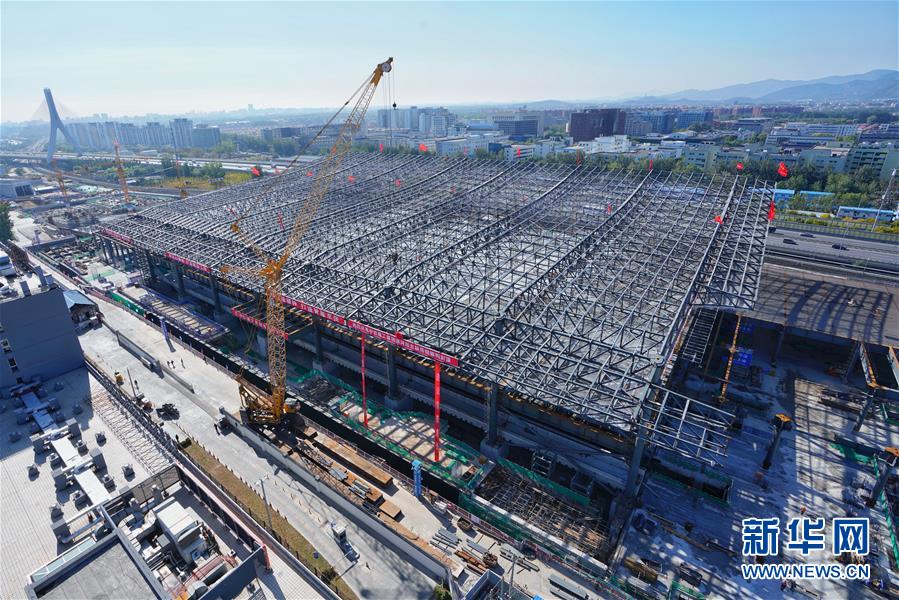10月17日拍攝的建設(shè)中的清河站。當(dāng)日,京張高鐵新建車站——清河站主體結(jié)構(gòu)正式封頂。清河站是京張高鐵建筑面積最大的車站,同時也是京張高鐵在北京地區(qū)的始發(fā)站之一。 新華社發(fā)(馮凱 攝)