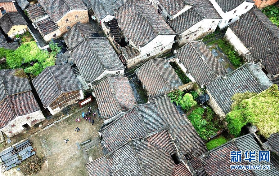 游客在廣西富川瑤族自治縣朝東鎮(zhèn)秀水村游玩(10月19日無人機拍攝)。這個位于瀟賀古道東南側的村落,至今仍保留著包括連片明清民居在內的大量古建筑。