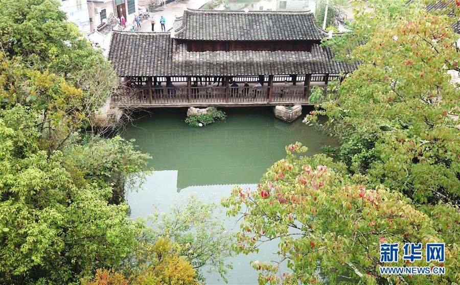 有著數(shù)百年歷史的廣西富川瑤族自治縣朝東鎮(zhèn)東水村風(fēng)雨橋(10月19日無人機拍攝)?!⌒氯A社記者 周華 攝