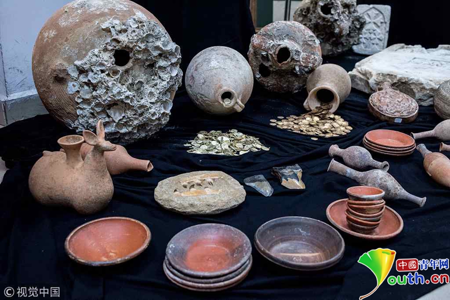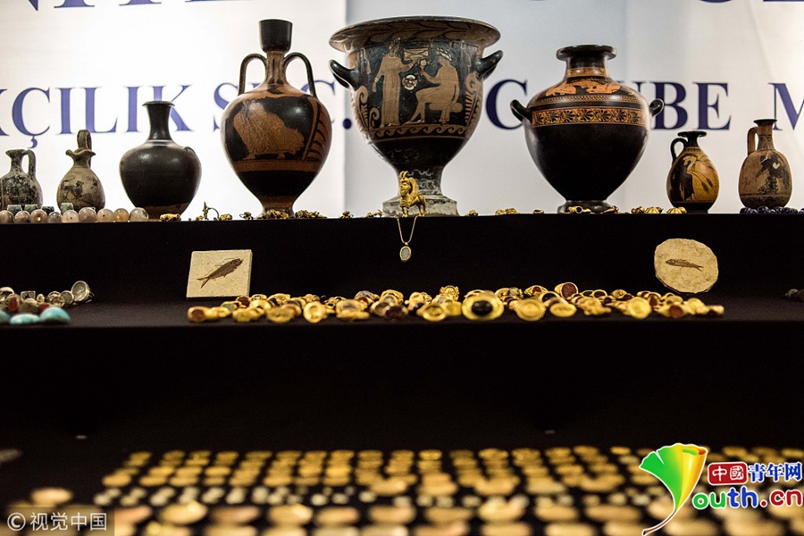 中國(guó)青年網(wǎng)北京10月21日電 當(dāng)?shù)貢r(shí)間2018年10月19日,土耳其伊斯坦布爾,繳獲的走私文物在伊斯坦布爾展出。以伊斯坦布爾為主的安全委員會(huì)展開(kāi)打擊文物走私行動(dòng),取得歷史性收獲,在全國(guó)12個(gè)省份繳獲了攻擊1.4萬(wàn)件文物,其中包括金幣、羅馬時(shí)期的墓碑、呂底亞銀幣、拜占庭硬幣以及羅馬時(shí)期的劍等。圖片來(lái)源:視覺(jué)中國(guó)