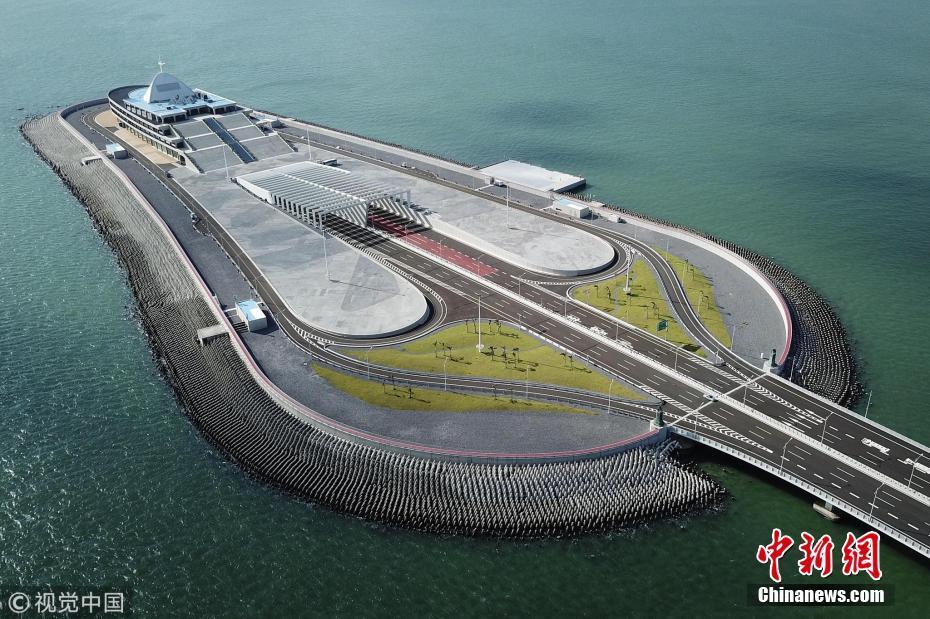 2018年5月23日,廣東珠海,珠澳口岸人工島上的港珠澳大橋收費站。