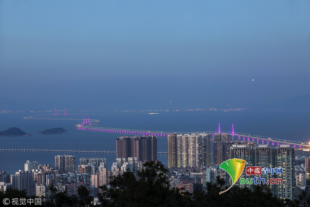 “超級工程”港珠澳大橋?qū)⒂?4日上午9時正式通車,一波美圖先睹為快。黃昆震 攝 圖片來源:視覺中國