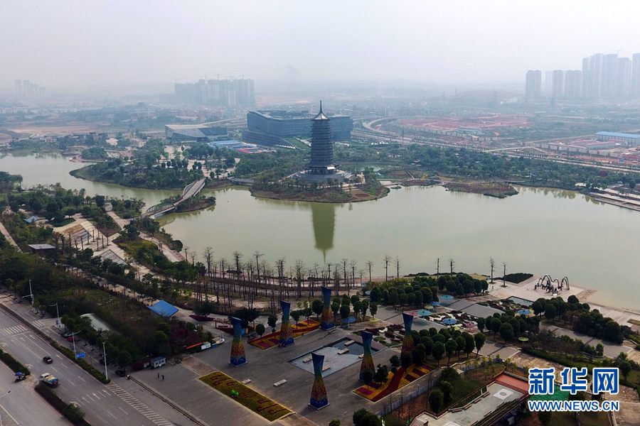 圖為無人機航拍的五象湖公園(攝于2018年3月5日)。新華網(wǎng)發(fā) 韋秀玲攝
