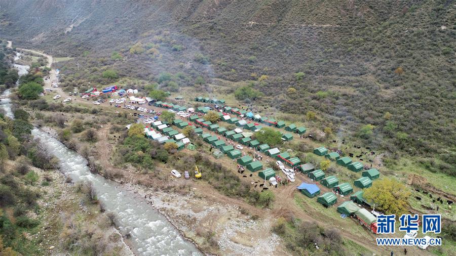 10月19日拍攝的在米林縣派鎮(zhèn)尼定村搭建的安置點。 記者從西藏自治區(qū)林芝加拉村雅魯藏布江堰塞湖災情應急搶險工作第二場新聞發(fā)布會上獲悉,19日13時30分,雅魯藏布江米林縣堰塞體上游水位超過堰塞體,開始自然過流,上游水位正在緩慢下降。目前,各項搶險救援工作正在有序開展。 新華社記者 覺果 攝