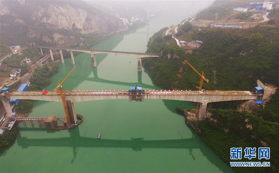10月23日,在重慶涪陵,施工人員在渝懷鐵路涪秀二線重點(diǎn)工程——烏江右線大橋主跨合龍現(xiàn)場(chǎng)作業(yè)。 當(dāng)日,由中鐵四局承建的渝懷鐵路涪秀二線重點(diǎn)工程——烏江右線大橋主跨成功合龍,標(biāo)志著大橋主體工程全部順利結(jié)束。烏江右線大橋項(xiàng)目全程460.1米,主跨192米,跨越烏江和319國(guó)道。在兩年多的建設(shè)過(guò)程中,施工人員攻克了“不等高墩”“不對(duì)稱邊跨”“邊跨入隧”等多個(gè)技術(shù)難題。 新華社記者王全超攝