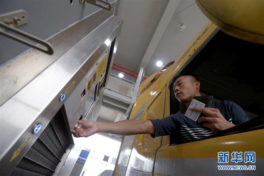 10月24日,港珠澳大橋珠海公路口岸通車首票出口貨物抵達一站式貨車出境驗放通道。當日9時,港珠澳大橋正式通車。 新華社記者張加揚攝