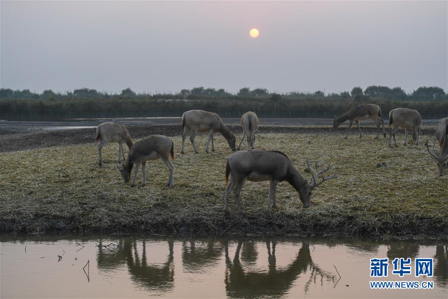 10月24日,生活在杭州灣國家濕地公園水禽棲息區(qū)的麋鹿在覓食。 時(shí)值深秋,位于浙江寧波的杭州灣國家濕地公園在落日余暉下呈現(xiàn)出一幅美麗的畫卷。 新華社記者 黃宗治 攝