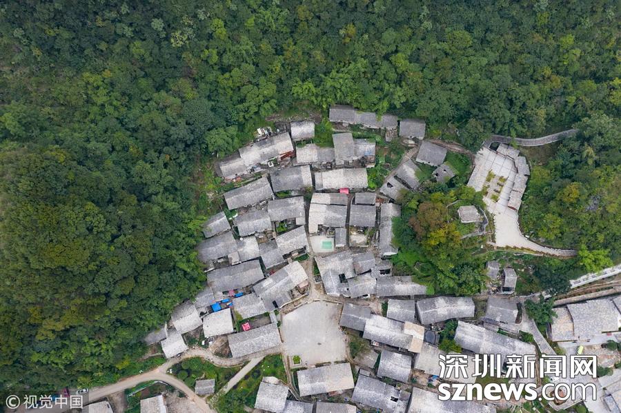 深圳新聞網(wǎng)訊 2018年9月27日,貴州安順,航拍坐落在群山中的鎮(zhèn)寧布依族苗族自治縣高蕩村。鎮(zhèn)寧高蕩村民居為石木結構干欄式石板房,建造時間五、六十年至數(shù)百年不等,建筑保存基本完好。