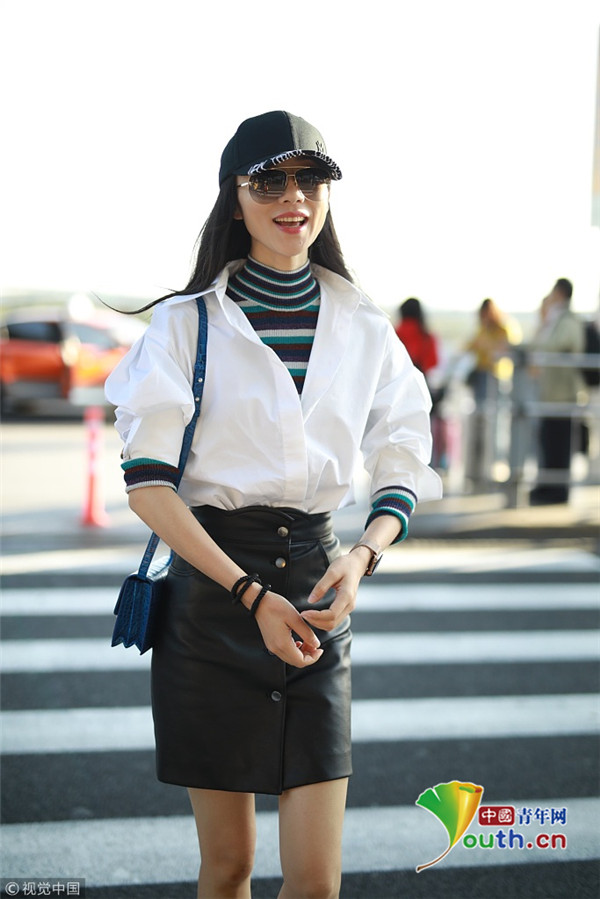 2018年10月28日,上海,韓雪現(xiàn)身機場。她穿裹身皮裙秀長腿、身姿,架黑超帥氣邁步遛機場,衣品氣場雙開掛,自提行李過安檢全程甜笑展親和。