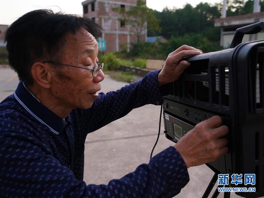 10月30日,曾紀(jì)連在寬田鄉(xiāng)山下村調(diào)試放映設(shè)備,準(zhǔn)備為村民們放映電影。